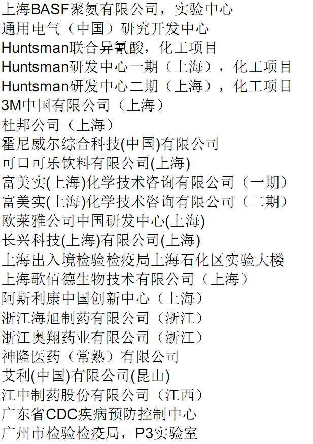 菲尼克斯(中国大陆)主要用户名录